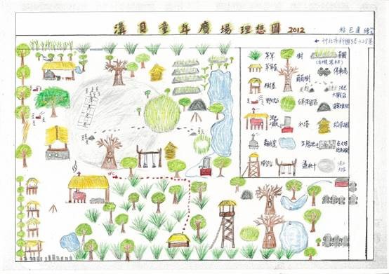 1970黃金快樂童年需要玩大埕遊戲,就保留泥巴地大埕,需要爬樹就保留樹的生長腹地,需要生火野炊就規劃生火區,需要玩沙就設置大沙池,需要玩獵兔捉迷藏就保留茅草叢,需要創作DIY就設置木工區,需要秘密基地就蓋樹屋(提燈籠需要沒光害、放風箏需要寬闊的空地和工作台),孩子愛玩水就挖防洪池塘!台灣遊戲文化13大範疇如下面附註